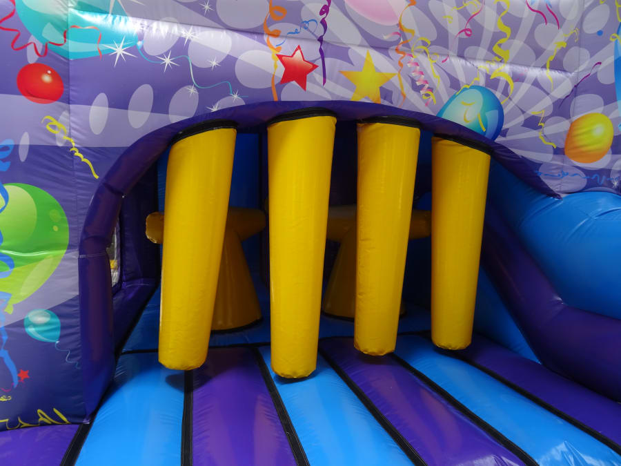Welcome to the Ultimate Fun Zone with the 16ft x 16ft Obstacle Jump n' Slide are you looking to make your child's birthday party or special event an roaring success? Our Children's Combo Bouncy Castle Hire service in Stratford Upon Avon, Alcester, and Bromsgrove presents the vibrant Obstacle Jump n' Slide a whole new level of excitement to your children's party.