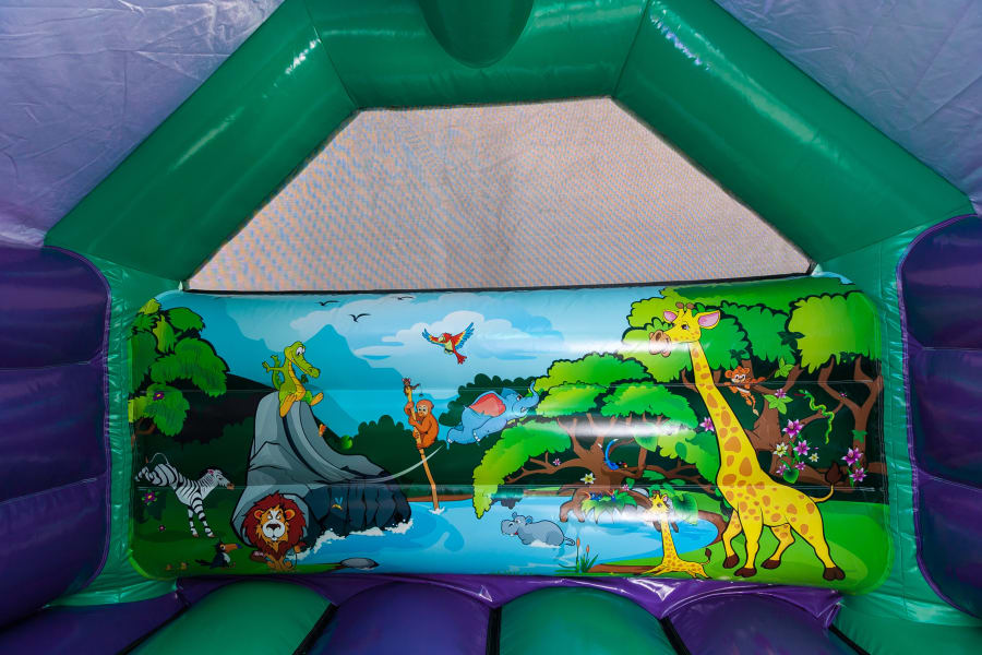 Don't miss out on the opportunity to make your child's party an unforgettable experience. Book our 12ft x 15ft Jungle Themed Combo Bouncy Castle today and let the laughter and joy fill the air!