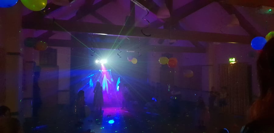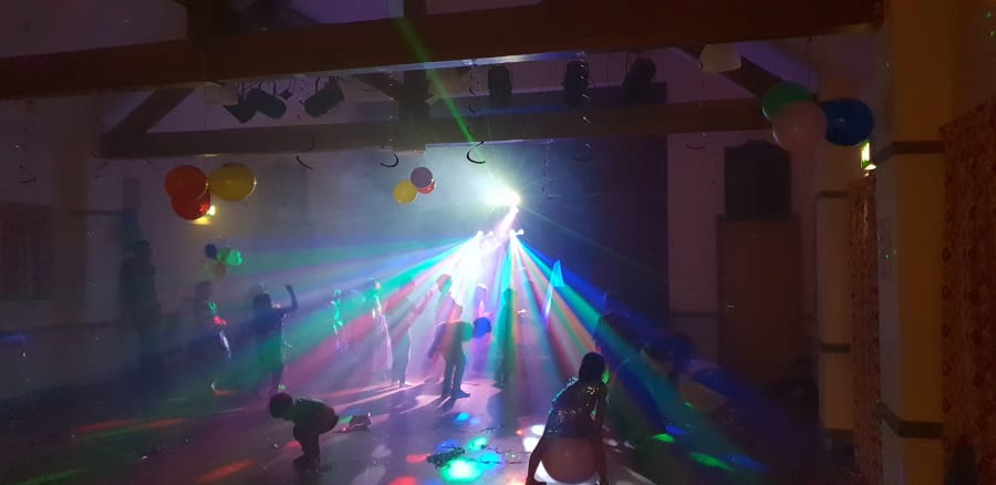 This is full Disco setup using a professional Disco Lighting rig which is top of the rang and includes 2 x derby's, 2 x multi colour lights, Green laser, 4 x strobes, 4 LED flower lights, Haze Machine, 2 x 18” Speakers 4 x up lights. All the lights can work either in a sound active mode or as a pre-programmed mode, Giving you the full Disco experience without the cost of a DJ, by connecting via Auxiliary cable or Bluetooth, and playing you own created playlists.